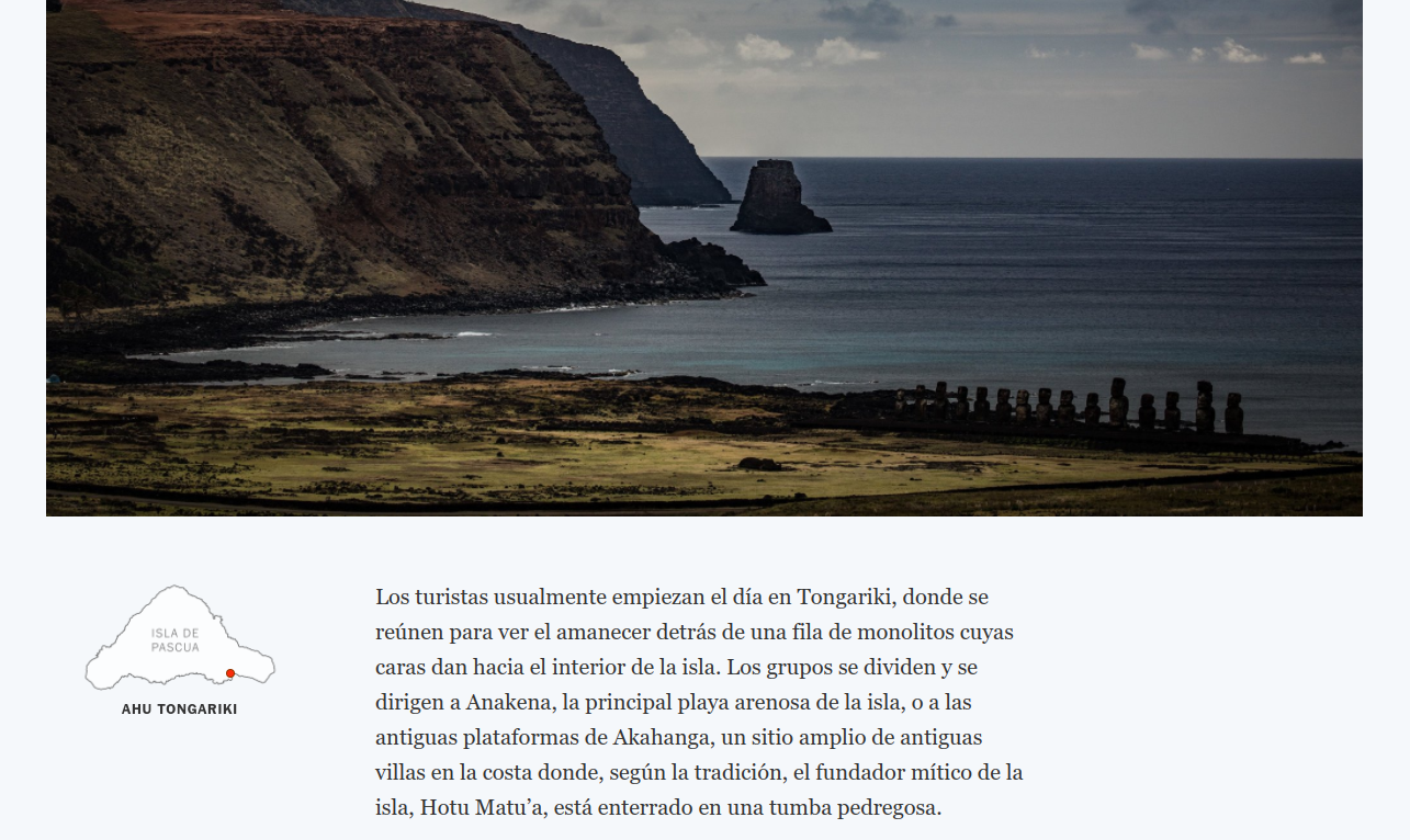 @nytimes publica interesante articulo interactivo sobre el riesgo que sufre #IslaDePascua #RapaNui por el aumento del nivel del mar, producto del #CambioClimático https://t.co/dEoqef8pBn pic.twitter.com/F2QeBYJSI5— Polinesia Chilena (@polinesiachile) 16 de marzo de 2018